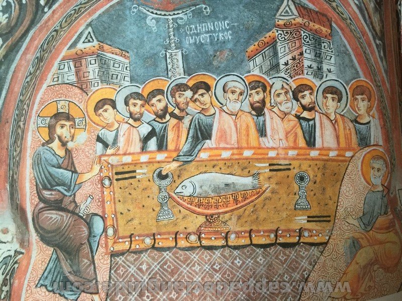 На центральной апсиде-Деисус, на северной апсиде-Мария и младенец Иисус, а на южной апсиде-изображение ангела Михаила. Церковь восходит к концу XII и началу XIII веков.