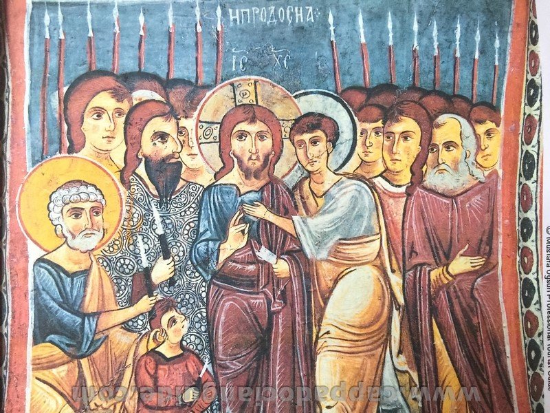 Другие сцены: Вход В Иерусалим, Тайная Вечеря, Предательство Иудой И Иисусом Перед Пилатом. Крестный Путь, Смерть Христа, Погребение, Анастасия И Вознесение. Портреты Святых И Преображения Господня Написаны Над Входом.