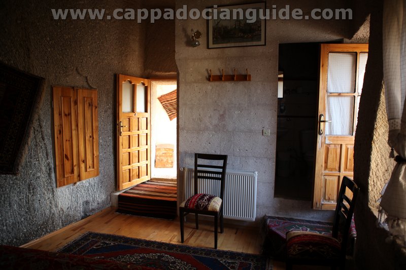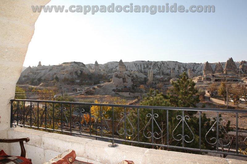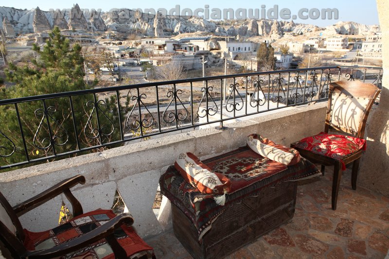 Private balcony of the cave offers you one of the best view of Uchisar Casttle, Wineyards, Fairy Chimneys at head of the “Pigeon Valley” and “Goreme Valley”. While you sipping your coffe or herbal teas at traditionaly decorated balcony you can enjoy the captivating landscape, you can watch Balloon Flights in the morning or watch splendid Sunset.
