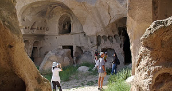 Approximately 500 metres a short walk in one of the pristine valleys to arrive at Keşlik monastery where we will visit churches, baptism pools, refectory and other complexes used by the monks. The biggest Dinning Cave Room is carved out at this Monastery.